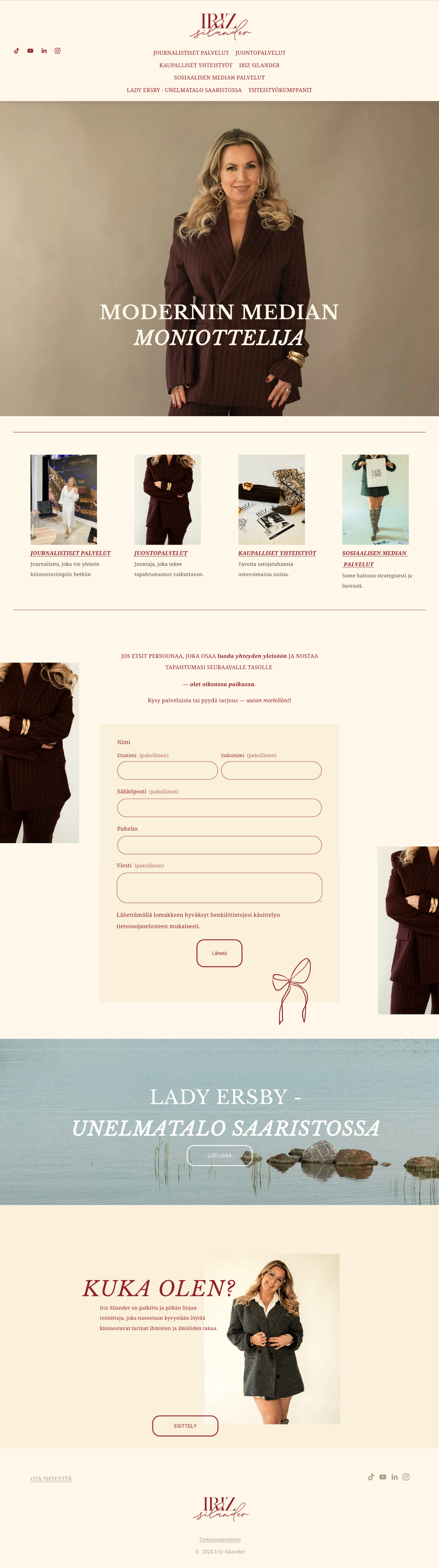 Jos haluat rakentaa brändin ja verkkosivut kunnolla alusta asti, tehdään se oikein. Ota yhteyttä, niin suunnitellaan sinulle kokonaisuus, joka kestää aikaa ja tuntuu omalta.